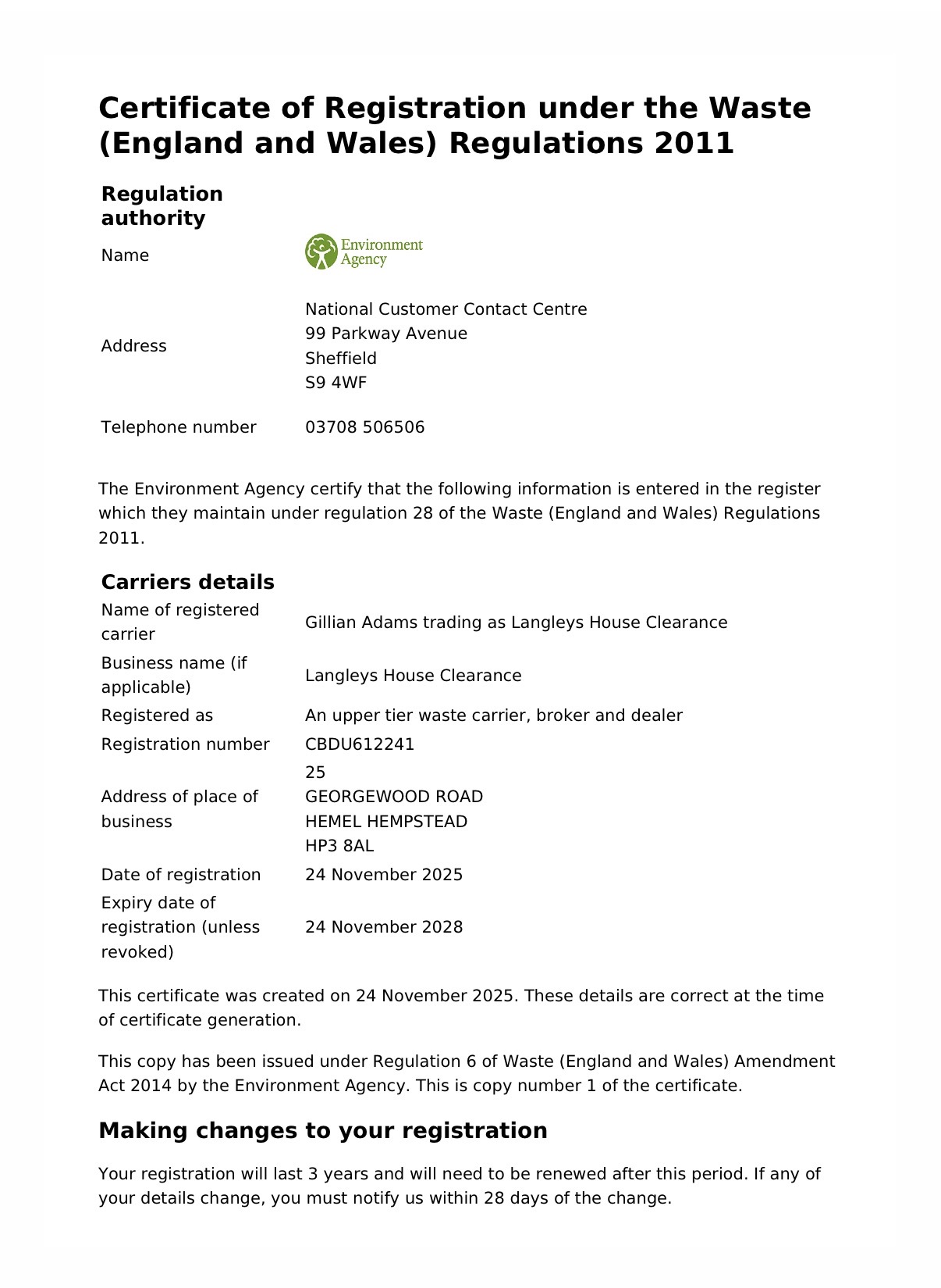 Langleys is a fully licensed waste carrier under the Environment Agency’s waste management registry.
